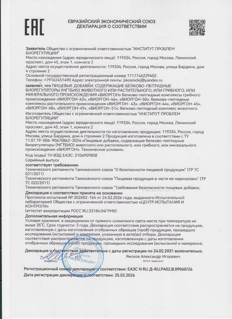 Изготовитель: ООО «Институт проблем биорегуляции», г. Москва, 119334, Ленинский проспект, д. 45, этаж 1, комн. 2.